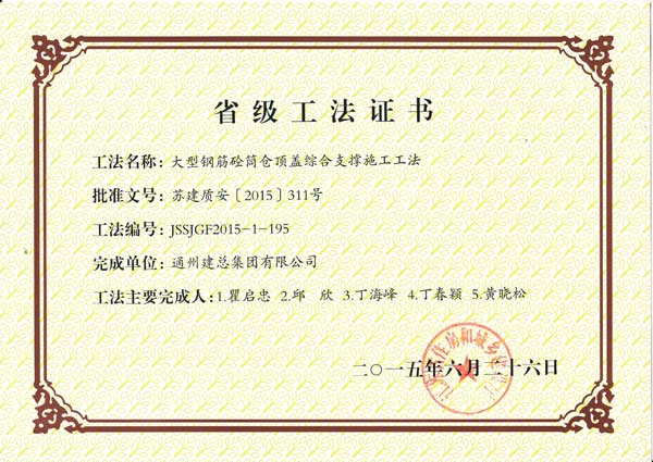 大型鋼筋砼筒倉頂蓋綜合支撐施工工法——2015年江蘇省級工法