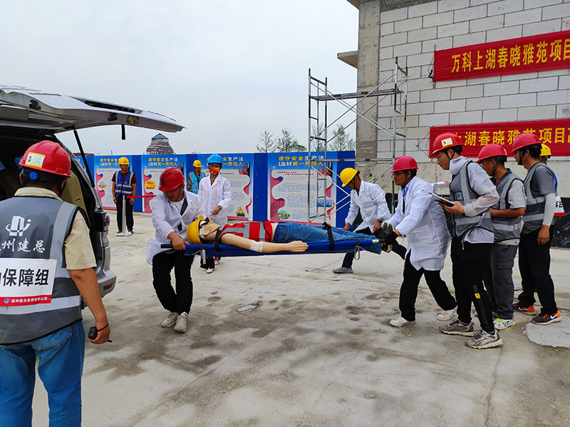 【概要描述】近日,海安市在由上海公司承建的上湖春曉項目現場舉辦了“2022年度安全活動月觀摩會”,海安市上湖創新區管委會副主任曹衛東、海安市上湖創新區社會發展局局長于海軍、海安市君萬置業有限公司項目經理曹劉陽等有關部門領導參加了會議,并先後講了話。上湖創新區在建項目所有項目經理和公司項目部人員參加觀摩活動。 這次活動由海安市君萬置業有限公司和我公司共同承辦,觀摩會上進行了高空墜落事故演練和消防防火安全演練,